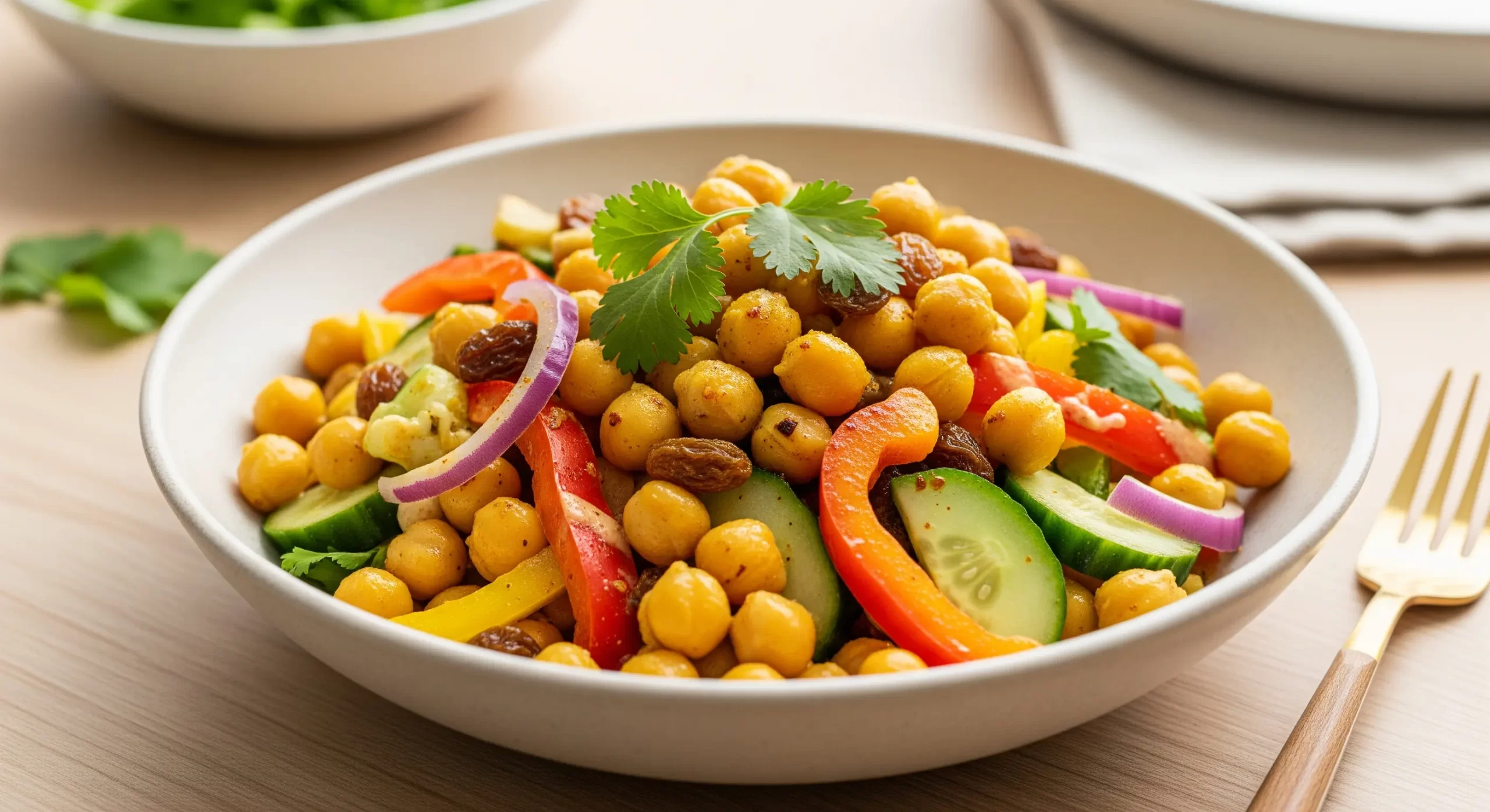 A: Chickpeas are the perfect canvas for bold flavor! Not only do they soak up the rich curry spices beautifully, but they add a hearty, nutty crunch that keeps you feeling full and energized. Plus, they’re a brilliant source of plant protein and fiber, making this salad as nourishing as it is tasty.