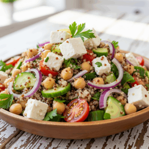 Vibrant Quinoa & Chickpea Salad with Creamy Vegan Feta invites you on a culinary journey where nutritious ingredients meet bold, fresh flavors. This wholesome salad draws inspiration from Mediterranean kitchens, reimagined with a plant-based twist that highlights the power of quinoa and chickpeas. Each bite bursts with texture and color, while the luscious vegan feta adds a tangy, creamy element that elevates the whole dish into a perfect harmony of taste and nourishment.